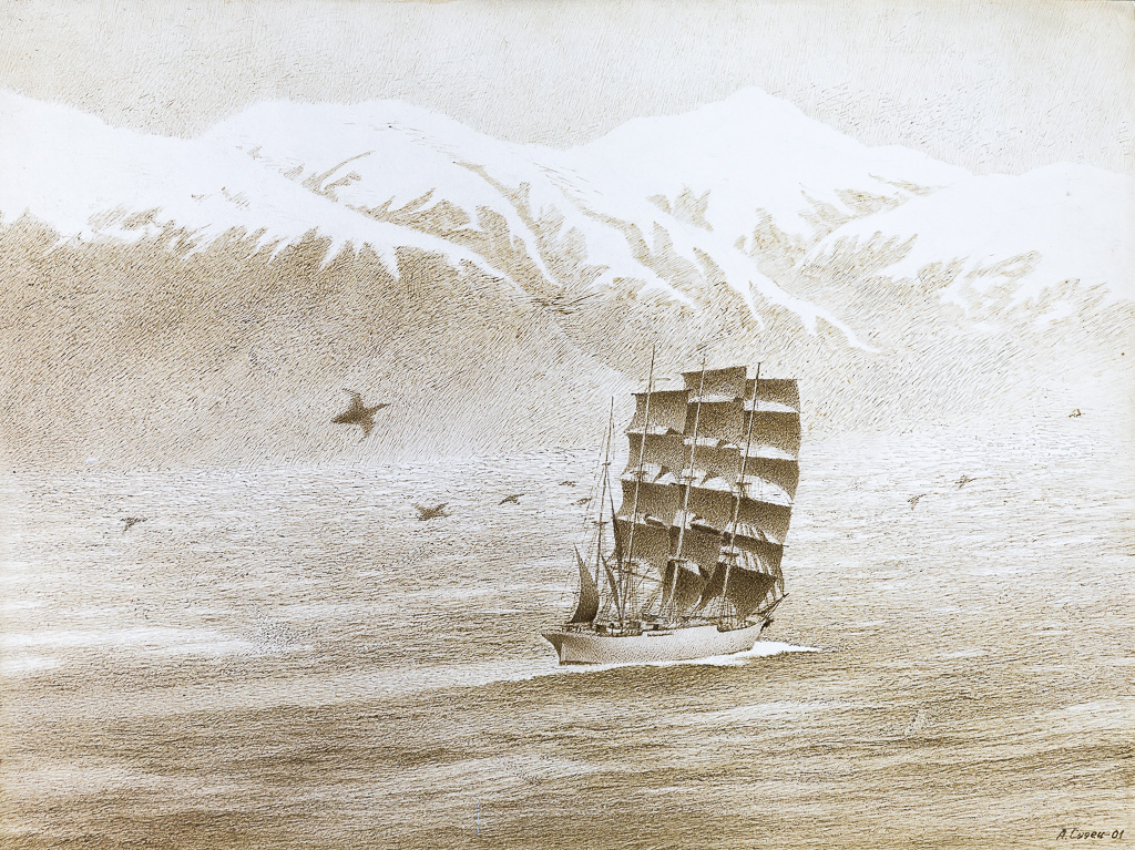Кавказ зимой. «Седов» Александр СУДЕЦ Графика 80 х 60 см 2001 г. https://marina-gallery.artatrium.ru/wp-content/uploads/2020/07/kavkaz-zimoj.-sedov.mp3