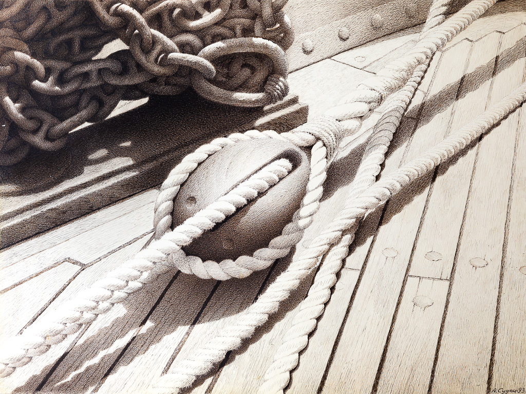 Раскалённая палуба. Чёрные цепи, белые снасти. «Седов» Александр СУДЕЦ Графика 54 х 72 см 1993 г. https://marina-gallery.artatrium.ru/wp-content/uploads/2020/07/raskalennaya-paluba.-chernaya-czep-i-belaya-snast.mp3